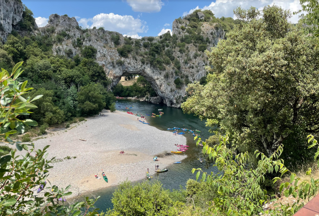 We started our first day in the Ardeche filled with zing, since the campsite that we nestled in was surrounded by Pont D’arc, where people cramp up to the beach side, doing a variety of different things. For instance, the demanding sport of kayaking, perhaps people racing hither and thither and young children splashing and paddling around the shallow water. Perhaps some would even challenge themselves to climb up The Arc from the water itself! Not far beyond the narrow road was the renowned replica of Chauvet Cave, explaining dozens of millennia of history, holding the very record of the oldest paintings known to the modern world.